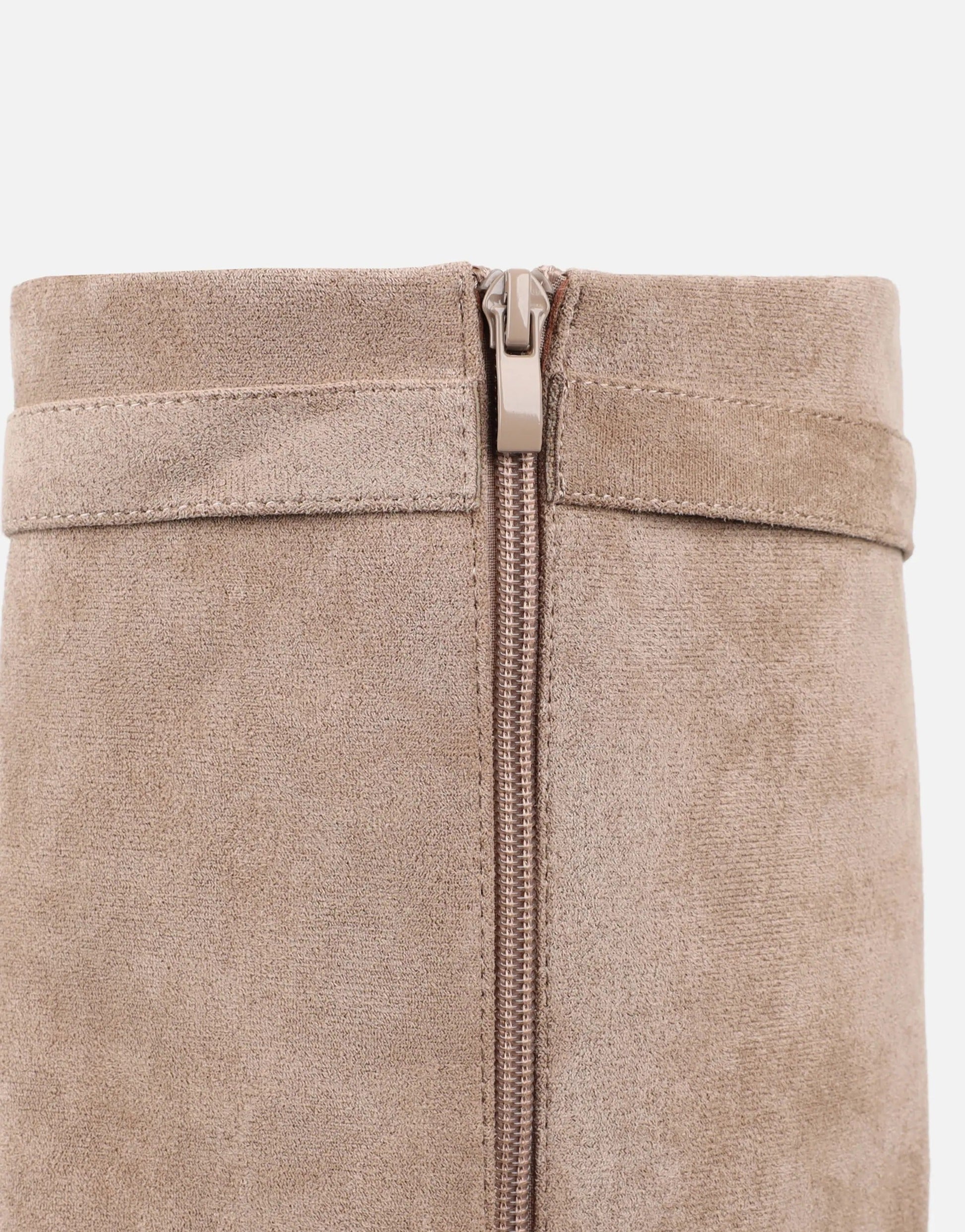 Ces bottes sont fabriquées en superbe daim artisanal qui recouvre toute la chaussure, y compris la jambe, pour un effet maximal, avec un magnifique détail de revers. Elles présentent également une jolie boucle décorative sur le dessus et un talon caché. À associer avec de la maille pour un look automnal glamour.